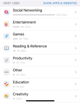 أخيرًا أنتبه، أن ما أشاهد خلال يومي يسيطر علي. أنا أفقد السيطرة. وهذا ليس مزعجًا وحسب، إنه مأزِق! أنا لا أقول إننا عندما نشعر برغبة ما بسبب أشخاص آخرين هو بحد ذاته سلوك سيء، ولكن السيء عندما يصبح هذا نمط، وأن يكون جَلّ ما أتغذى عليه هي معلومات كهذه! وهذا النمط، بدوره، تكوّن بسبب الإدمان على تلقي المعلومات غير المهمة بدون إدراك. فإذا كانت مدة استخدامي لهاتفي هي 44 ساعة في الاسبوع، فأنا أقضي أكثر من نصف الوقت (28 ساعة) تقريبًا بقراءة/مشاهدة أين ذهب الناس اليوم، ماذا يأكلون، وماذا يفكرون، ماذا يقرأون (بدون مبالغة، انظر إلى الصورة).
